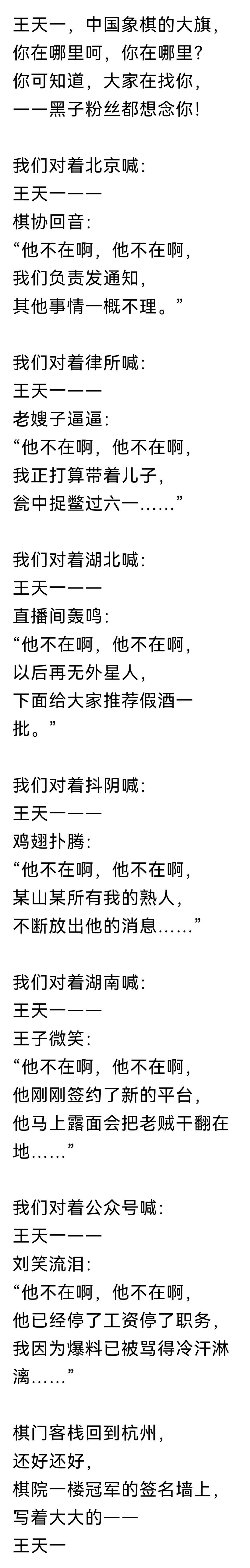 附:网友写的《王天一,你在哪里》(仅代表作者想法)