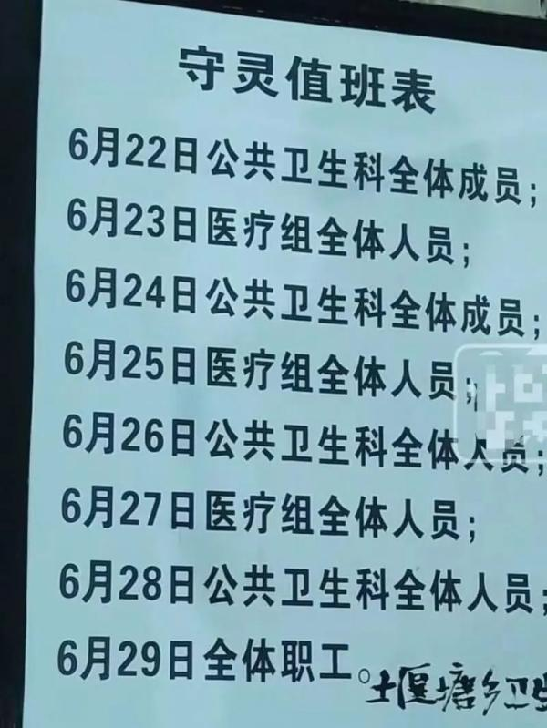 当地一位老人去世,却安排中学和卫生院的工作人员守灵,这份值班表足足安排了8天。
