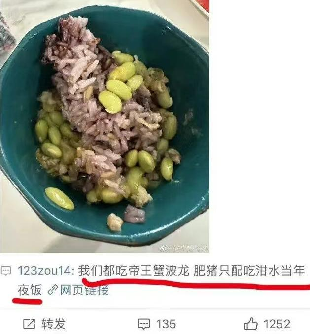 “我们都吃帝王蟹、波龙,肥猪只配吃泔水当年夜饭。”