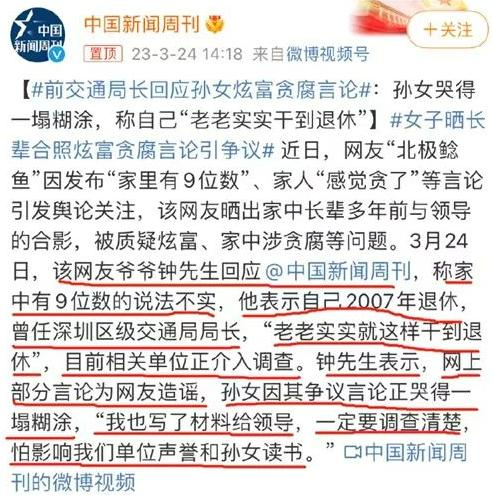 老爷子到底经过不少大风大浪,一看火势越燃越猛,站出来郑重辟谣,说自己老老实实干到退休,网上部分言论为网友造谣,表示已“写了材料给领导,一定要调查清楚”。