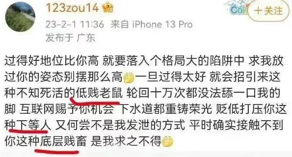 在她眼里,“混得不好”的,就是“低贱老鼠” “底层贱畜”,转世多少回都不配给她舔脚。