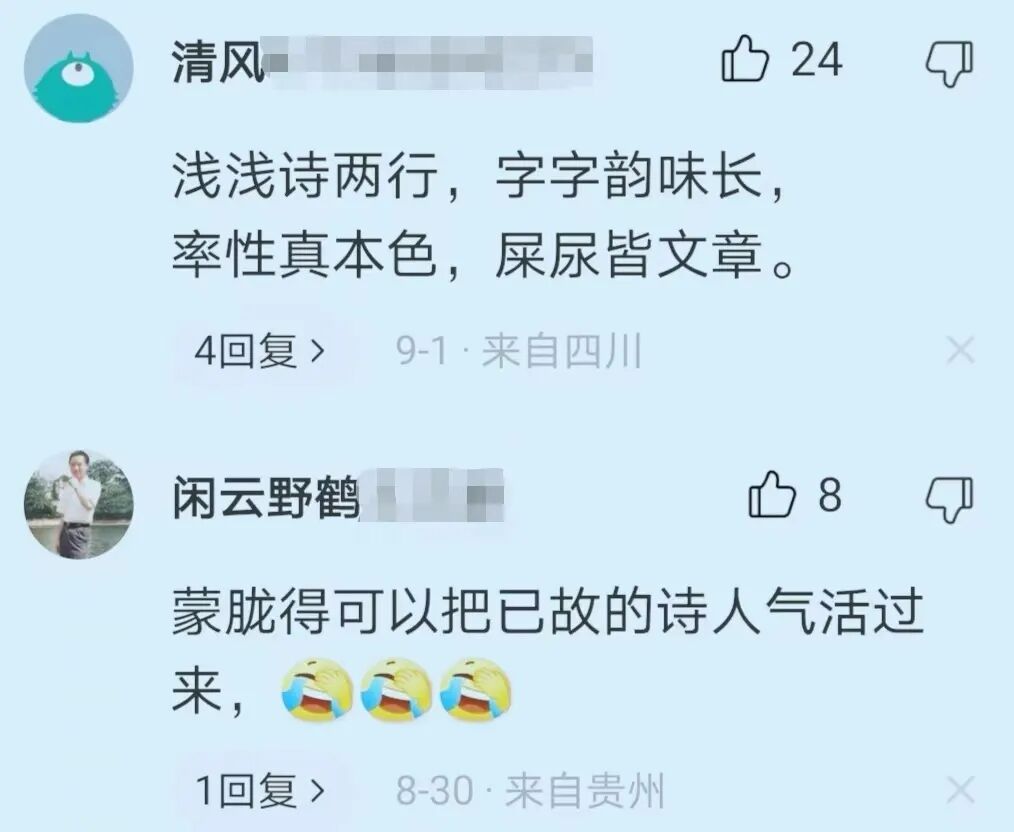 “读了贾浅浅的诗,瞬间治愈了我多年写不出诗句的毛病。”