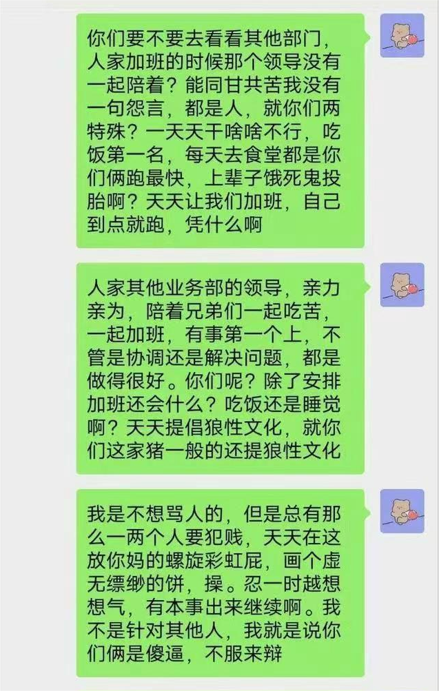 龙哥话已挑明,那走也要走个痛快,于是到413人的事业部大群扔出一串炸弹。
