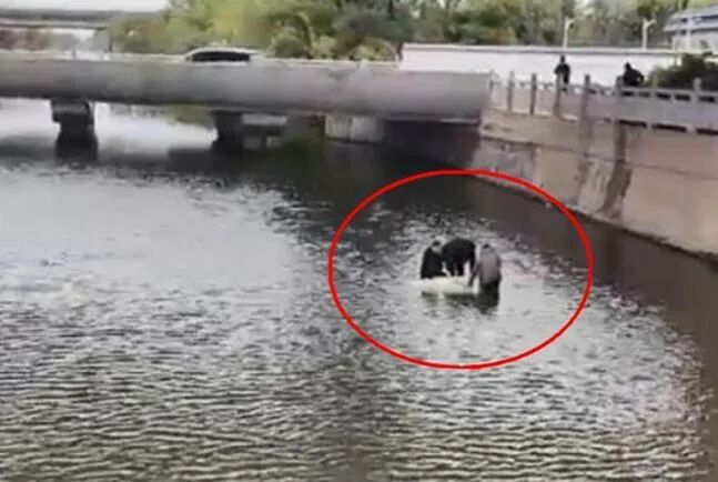 群众太冷漠了,光在岸上看,也不扔几块石头吗!