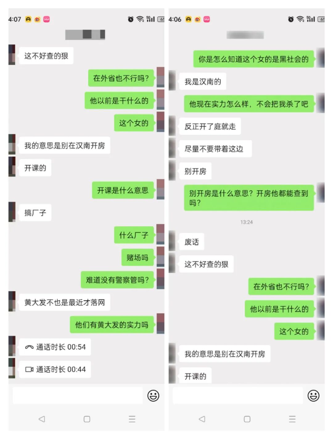 热心网友还提醒小编,以后尽量不要在汉南区的宾馆开房,查询个人开房信息对于“芳姐”轻而易举,被“芳姐”找到,一顿毒打跑不了。