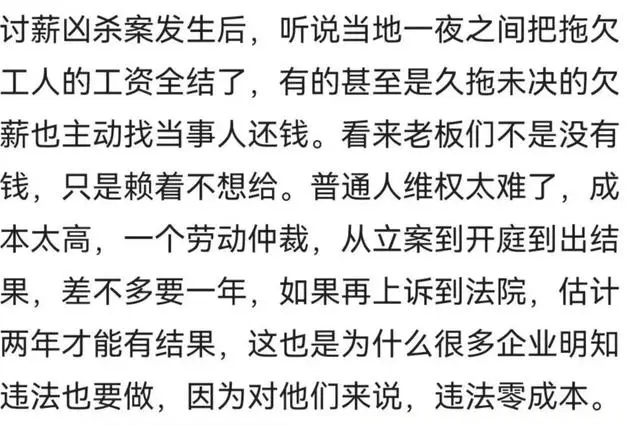 欠薪引发的恶性案件不是个例,大家见过很多报道,有的身边就有不少活生生的例子,有的自己就经历过讨薪维权,说起来都是一把辛酸泪。