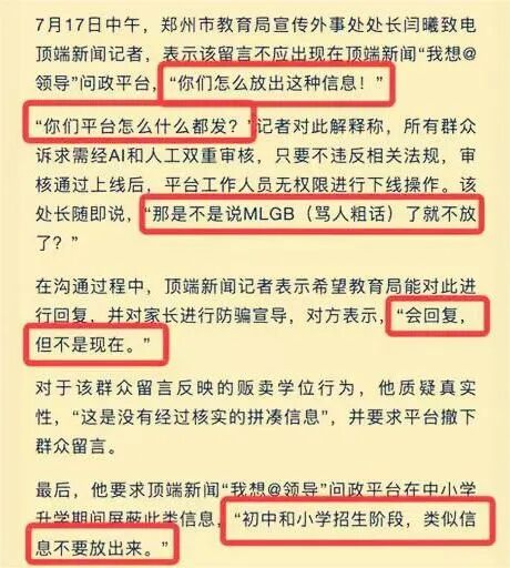 对于贩卖学位的乱象,闫处质疑其真实性,“这是没有经过核实的拼凑信息”,要求平台撤下群众留言。
