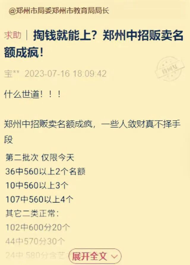 “掏钱就能上?郑州中招贩卖名额成风!”