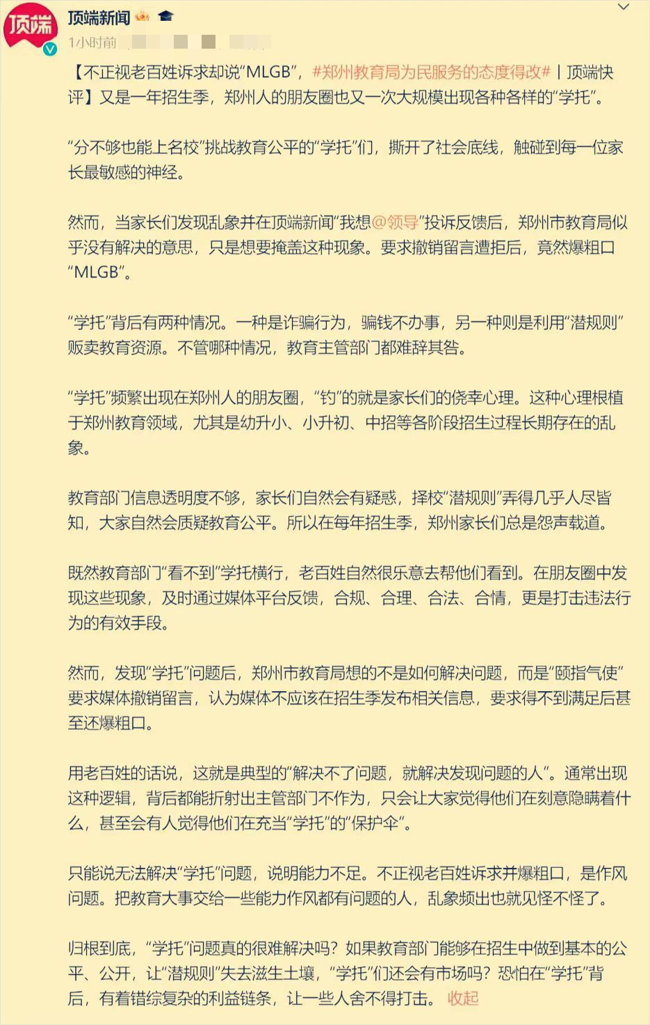 在这节骨眼上,郑州市教育局一官员不雪中送炭,反而来了一通火上浇油。
