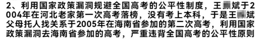 王某斌2004年在河北参加了一次高考,没考上本科,2005年找路子去海南参加了第二次高考。