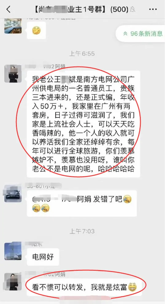 “我老公王某斌是南方电网供电局的一名普通员工,贵族三本进来的,还是正式编,年收入50万+。