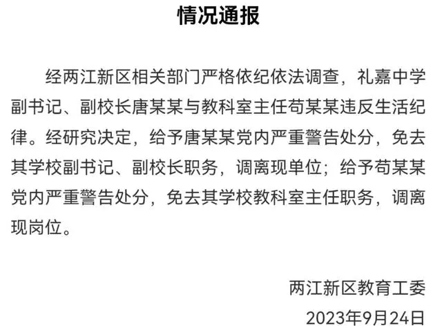 值得点赞的是,两江新区教育工委调查处理结果很快就出炉了:
