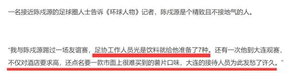 还有媒体透露,陈戌源住酒店也好,踢球也好,要准备7种不同饮料。