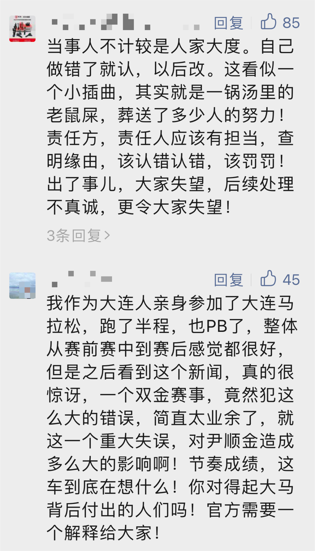 事后,大连马拉松组委会对引导车辆过马路表示遗憾,并向受影响的跑者和观众致歉。