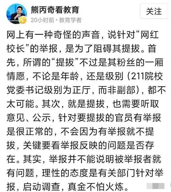 而作为外界的观众,我们也可以理解他此时的心情。毕竟,身为一名全国闻名的“网红校长”,这样的“丑闻”对他来说无疑是一个巨大打击。