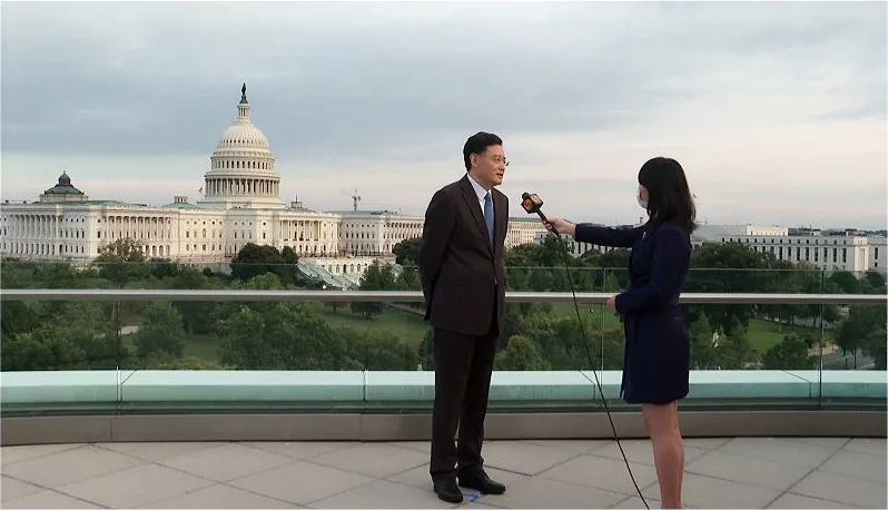 2022年3月,时任驻美大使秦刚在接受访谈时,9分钟被美国主持人打断23次。