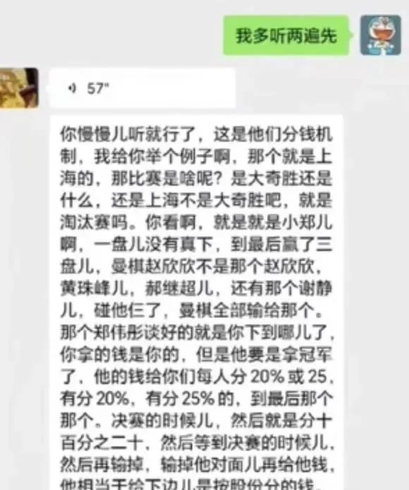 有人说,真要查事,深受棋迷喜爱的赵某荣特级大师会不会也脱不了干系啊?以前某次团体赛中微信聊天、转账记录、证人可都有呢。