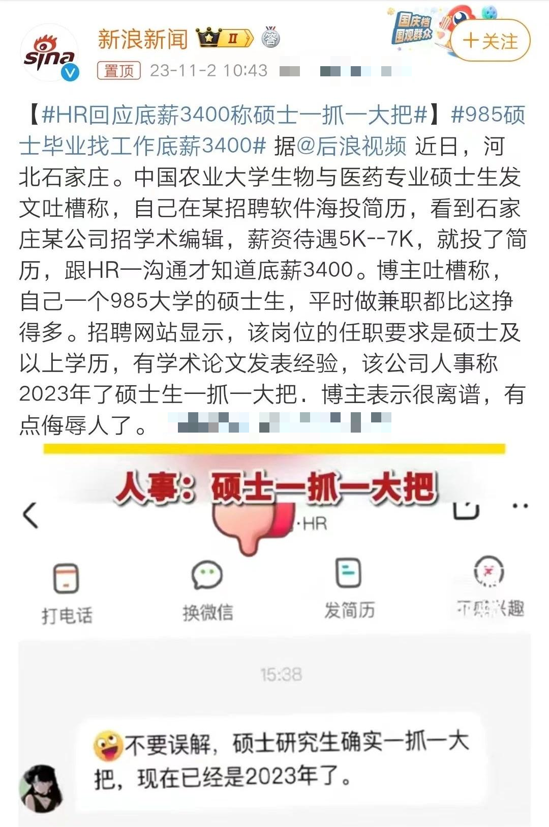 招聘人员,即业界所称“HR”不以为然:现在都2023年了,硕士一抓一大把!