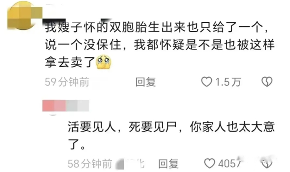 有的说嫂子当年在该医院生双胞胎,被告知有一个没保住,也疑心会不会小孩被卖了。