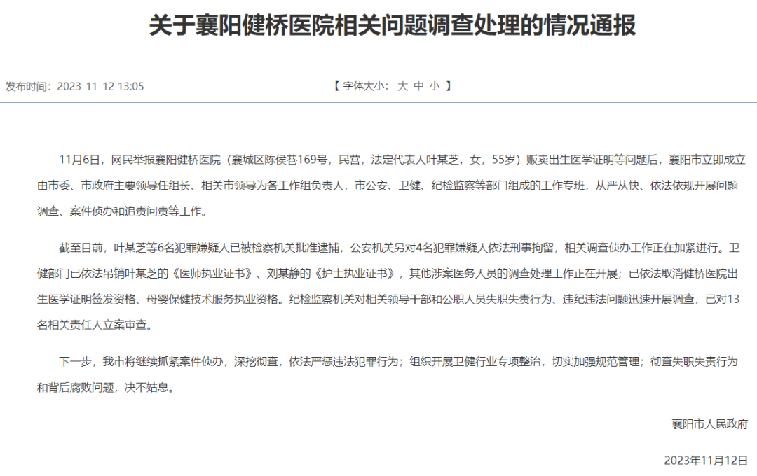 涉事医院不止健桥一家,叶有芝“不是一个人在战斗”,广东佛山、广西南宁等地的私营医院也涉嫌贩卖出生证,上官先生都进行了举报。