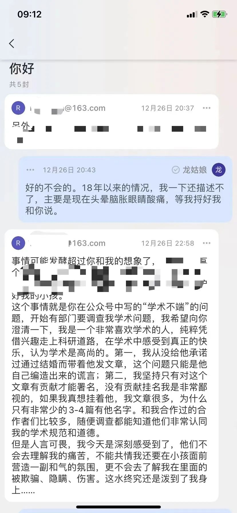 这个冉某某,在《起底》文章发出的当晚,发邮件联系我,表达了她的伤心和震惊,她说我的帖子对她而言就是晴天霹雳。