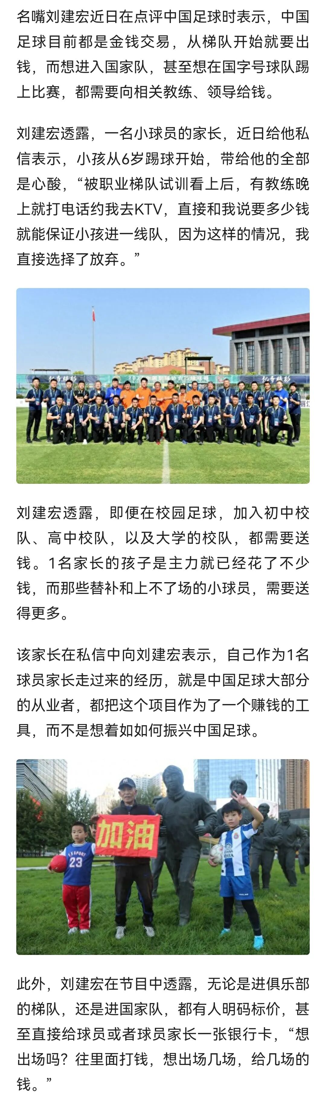 正如很多人讲的,能踢球的孩子,还要托门子找人,要花钱疏通关系,那么球踢得好、家里没钱的孩子怎么办?