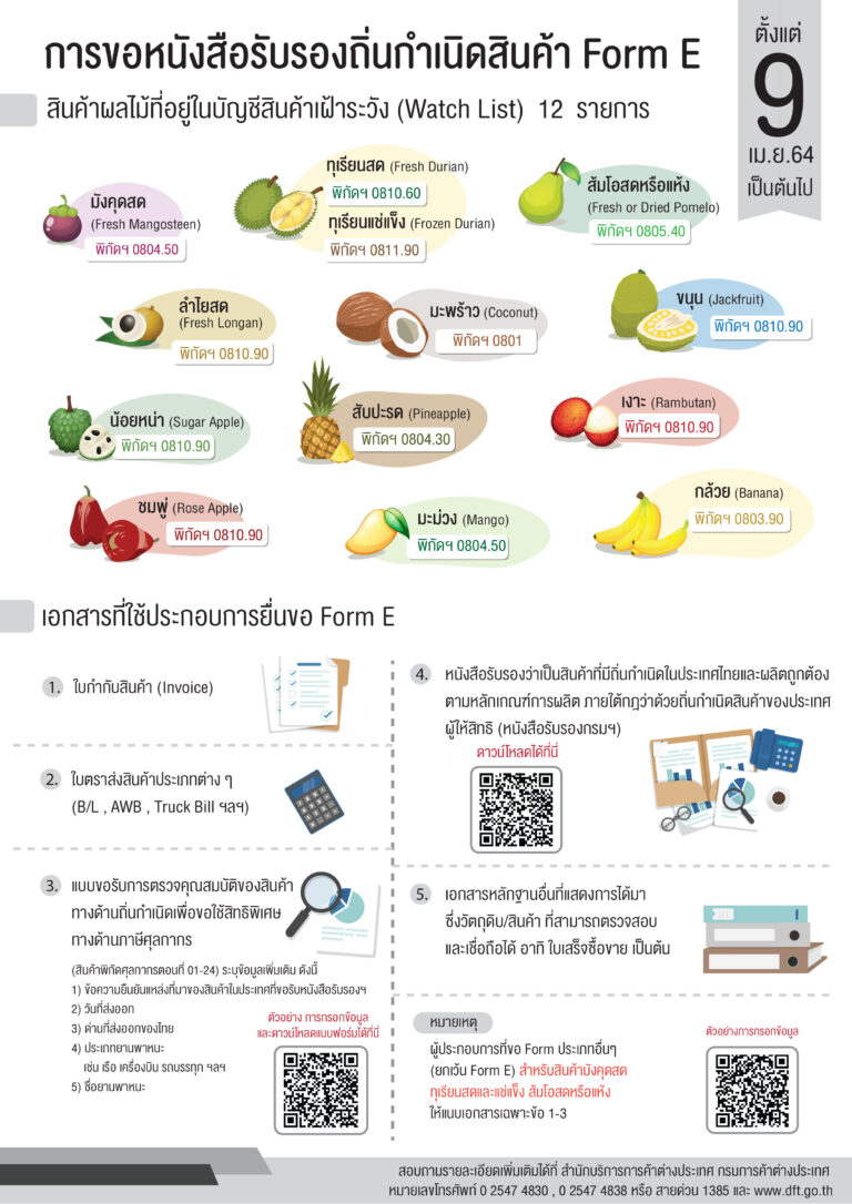 FORM E电子签名和印章系统是泰国副总理兼商务部长朱林于2023年提出实施的水果管理措施。旨在为泰国的贸易伙伴带来信心的同时,还有助于保证泰国出口水果的产地。标准和泰国水果在世界市场上的形象和声誉。