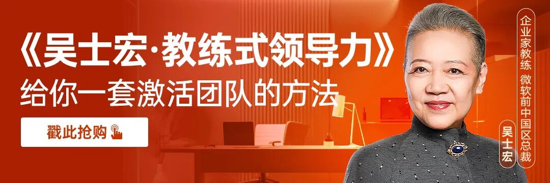 为你推荐新课《吴士宏·教练式领导力》,在这门课里,吴士宏老师将带着你一步步提升自己的领导力,激发你团队的主动敬业,实现组织赋予你的业绩目标。