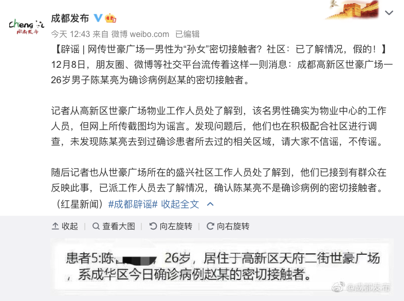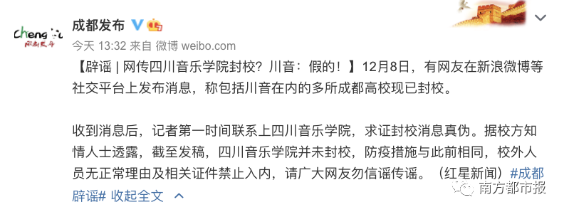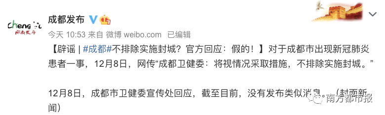 今天(12月8日),@成都发布 陆续发布一系列辟谣消息。