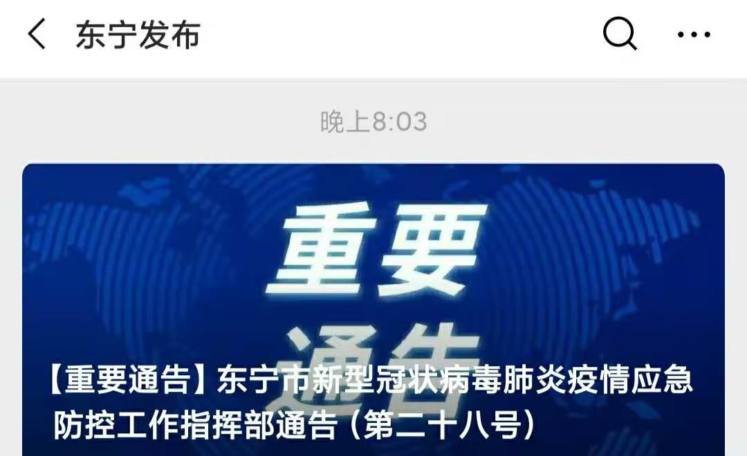 昨天(12日)晚上,黑龙江省东宁市新冠肺炎疫情应急防控工作指挥部通告,根据疫情防控形势,为防止疫情输出、严控人员出入,自2020年12月13日0时起,东宁市实行严格交通管制,人员车辆不准离开本地,特制定本通告: