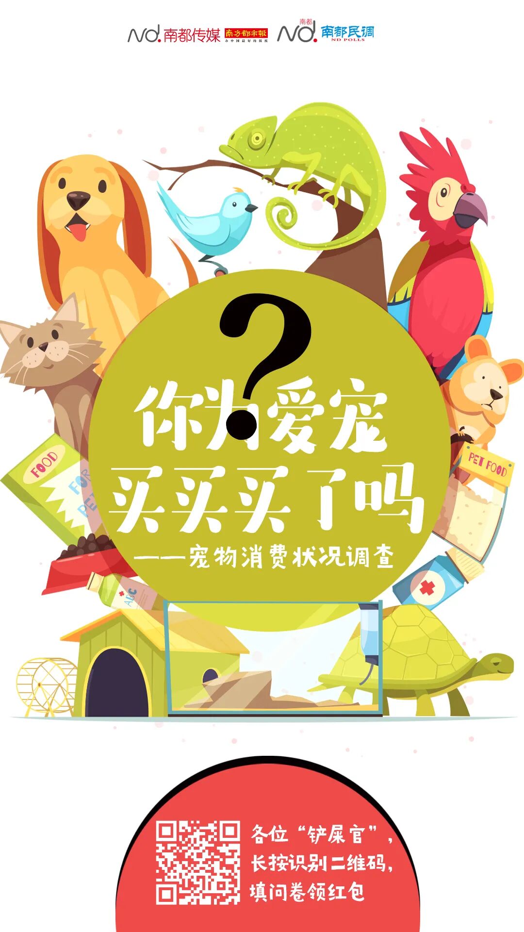 如今“吸猫”“撸狗”渐成风尚,“年纪轻轻,猫狗双全”成为不少人理想状态。随着生活水平的提高以及养宠观念的转变,相关宠物产业变得更加多样化,宠物医疗、宠物美容、宠物主题餐厅、宠物旅行……“萌宠”生意经愈唱愈火。宠主们为何热衷养宠?“铲屎官”的钱都花在了哪里?南都民调中心发起相关调查,戳链接填问卷,感谢您的参与!