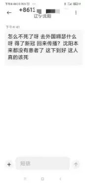 沈阳新增确诊者尹某某的密接者收到带有言语攻击的短信。