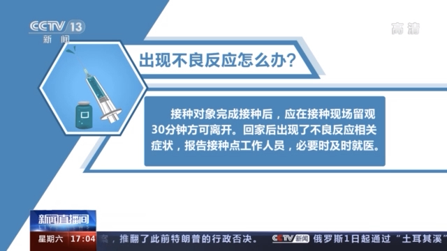 接种对象完成接种后,应在接种现场留观30分钟方可离开。回家后出现了不良反应相关症状,报告接种点工作人员,必要时及时就医。