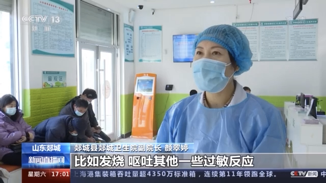 郯城县郯城卫生院副院长 颜翠婷:我们的接种者目前没有发现比如发烧、呕吐其他一些过敏反应,目前来看疫苗的总体情况是很好的。