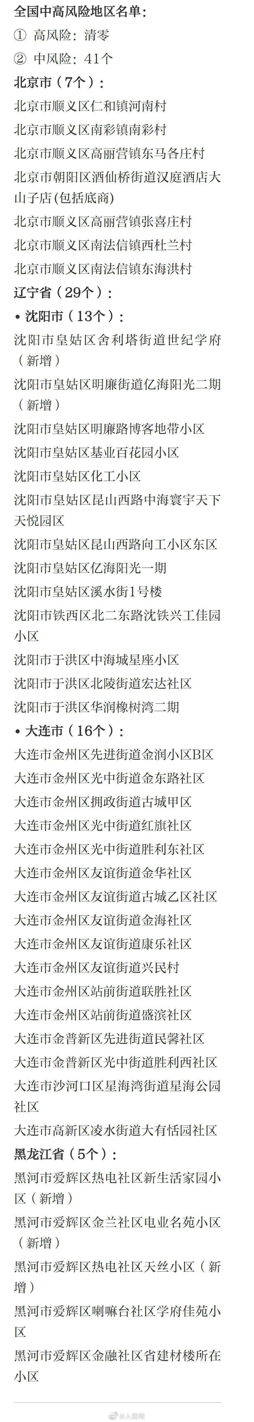 最新!41个中风险地区