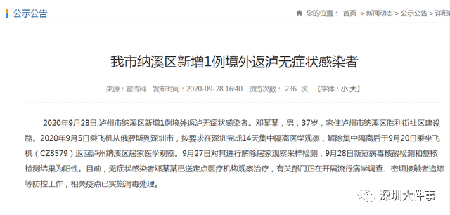 据四川泸州市卫健委官网2020年9月28日消息——