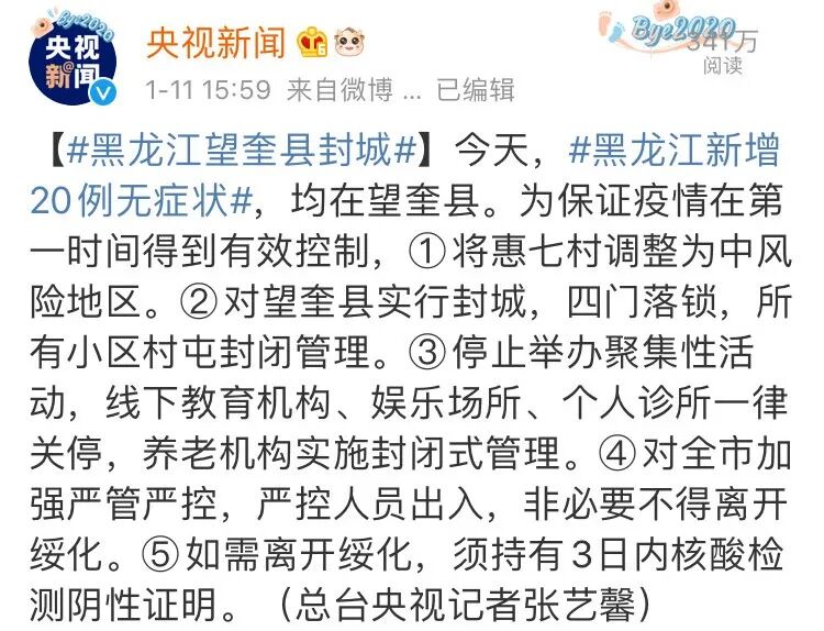 对全市加强严管严控,严控人员出入,非必要不得离开绥化。如需离开绥化,须持有3日内核酸检测阴性证明。