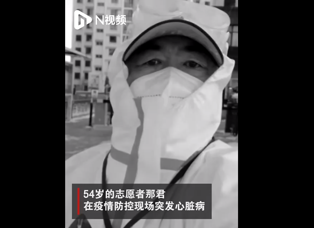 前天(1月10日),辽宁大连,54岁的疫情防控志愿者那君在消杀现场突发心脏病,经送医抢救无效后去世。