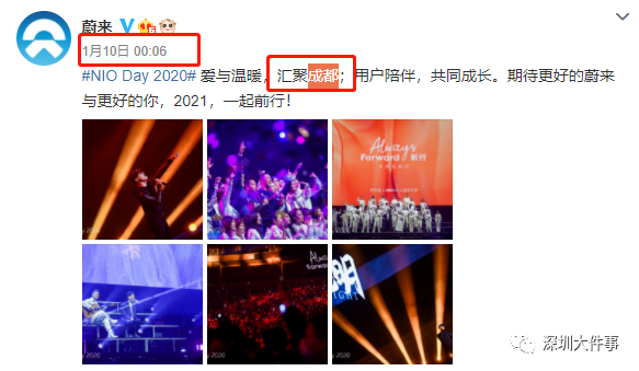 南都记者在蔚来官方微博注意到,1月9日,蔚来确实在成都举办了“NIO DAY”新车发布活动,多名车友参加。南都记者曾试图联系蔚来方面相关人员,目前未有回应。