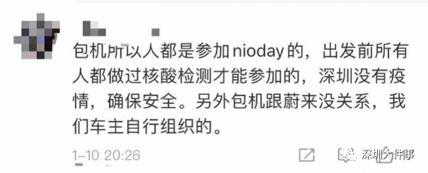 但南都记者也注意到,目前在社交网络上,有小部分疑似蔚来车主的网友提及,“包机的人都是做过核酸检测的,包机是车主自行组织”。