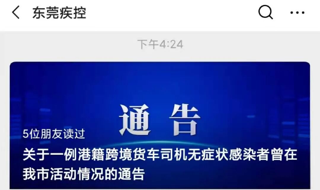 今天(1月12日)下午4时许,东莞疾控发布通告: