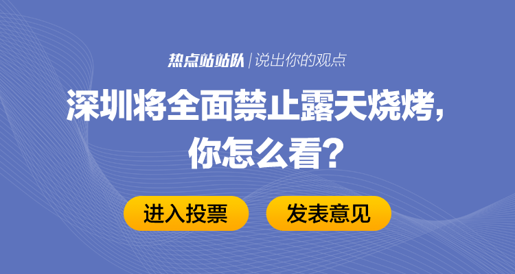 日前,深圳市大气污染防治指挥部印发了《2020年“深圳蓝”可持续行动计划》,明确提出,将依法查处露天烧烤行为,全面禁止露天烧烤。面对新要求,该如何对露天烧烤摊进行有序管理?欢迎戳下图投票说说看!(主持:蔡宇晴 编辑:柴华)