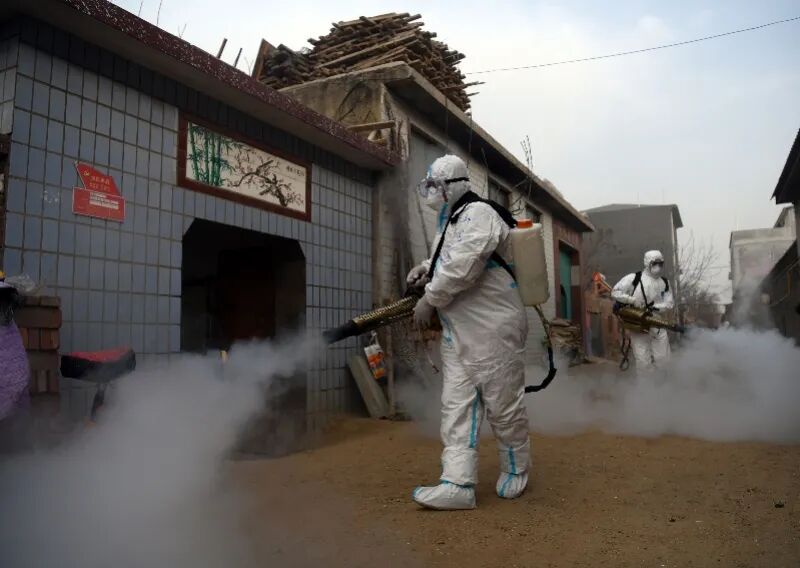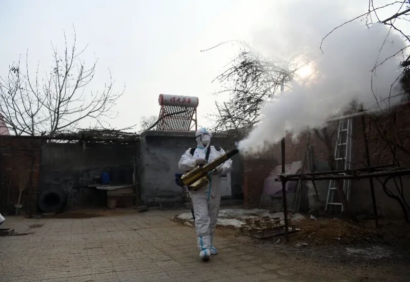 1月14日,志愿者在石家庄新乐市芦新村开展消杀工作。 新华社记者 金良快 摄