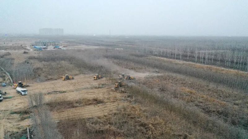1月13日,中铁十四局集团工人在施工现场作业(无人机照片)。当日,河北省石家庄市在正定县文正大街诸福屯镇固营村境内开工建设集中隔离点。据介绍,该集中隔离点施工场地约500亩,目前已有100余人、数十台工程设备进场。新华社记者 杨世尧 摄