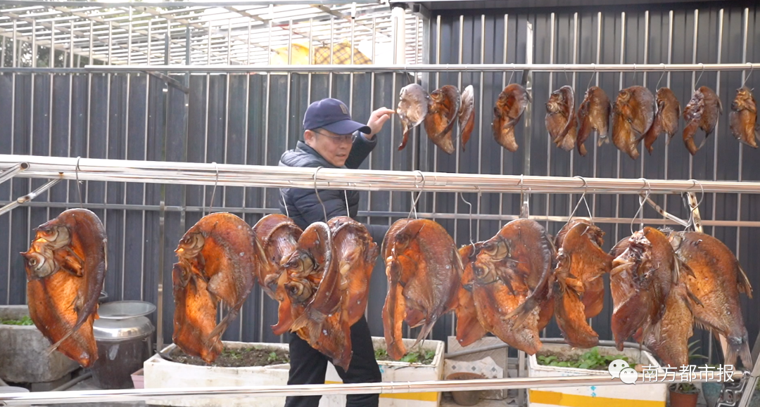 2021年春节临近,陈勇把40多条腌鱼挂在阳台上晾晒。