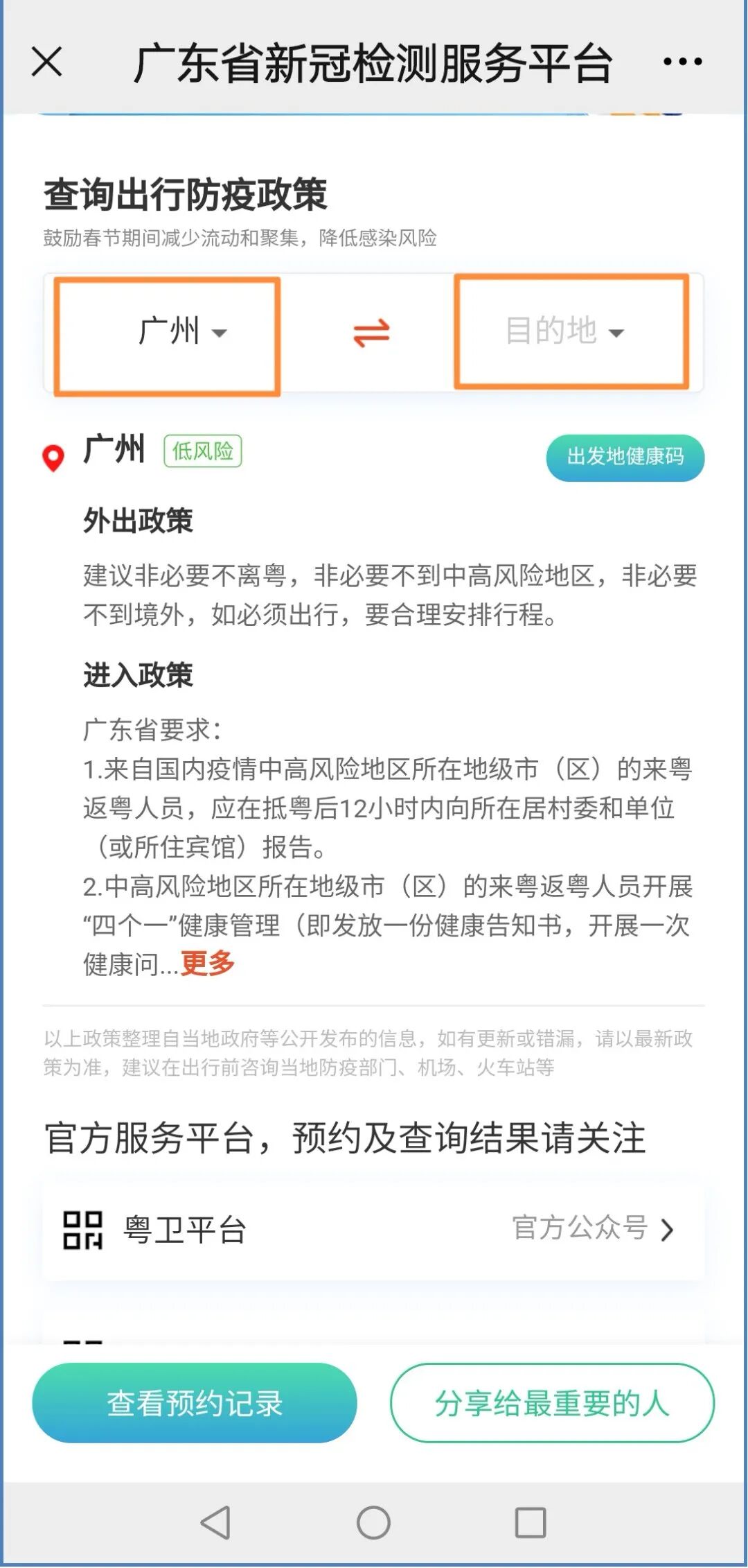 广东省新冠检测服务平台汇集了全省2000多个核酸采集点。手指一按,即可查询离你最近的核酸采集点。一键预约检测、查询结果,核酸检测更便捷。为广大群众提供全面、方便、快捷的核酸检测预约查询服务。