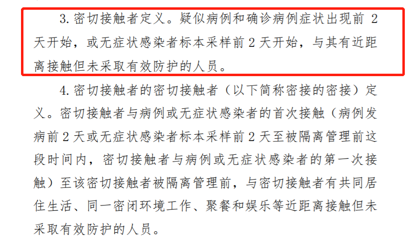 南都君从国家卫健委官网获悉,据《新型冠状病毒肺炎防控方案 (第七版)》,密切接触者定义为“疑似病例和确诊病例症状出现前2天开始,或无症状感染者标本采样前2天开始,与其有近距离接触但未采取有效防护的人员”。