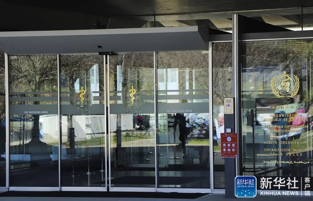 这是3月30日在瑞士日内瓦拍摄的世界卫生组织总部办公大楼的入口。新华社记者 陈俊侠 摄