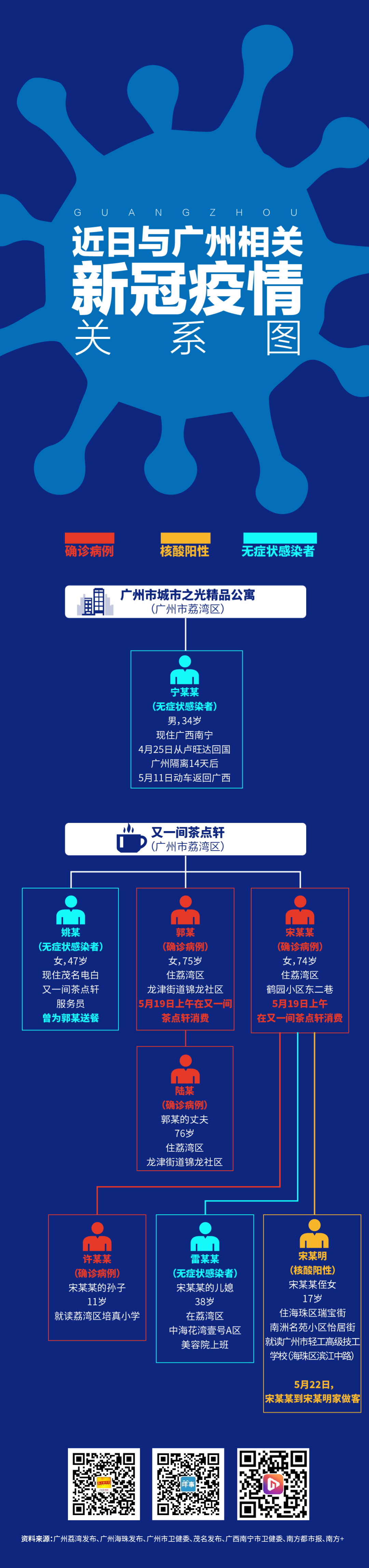 5月25日上午,广州市荔湾区新型冠状病毒肺炎疫情防控指挥部发布公告,要求5月15日至21日到过任点全天茶市港式点心(和业广场店)、和富盛迎超市、纯再好点茶餐厅、澳之星超市(龙津分店)、稻香(富邦中心店)、九龍茶记(城光荟店)、又一间茶点轩(中山七路店)、鸿福市场、荔湾中心医院等重点场所的市民群众尽快进行第二次核酸检测。