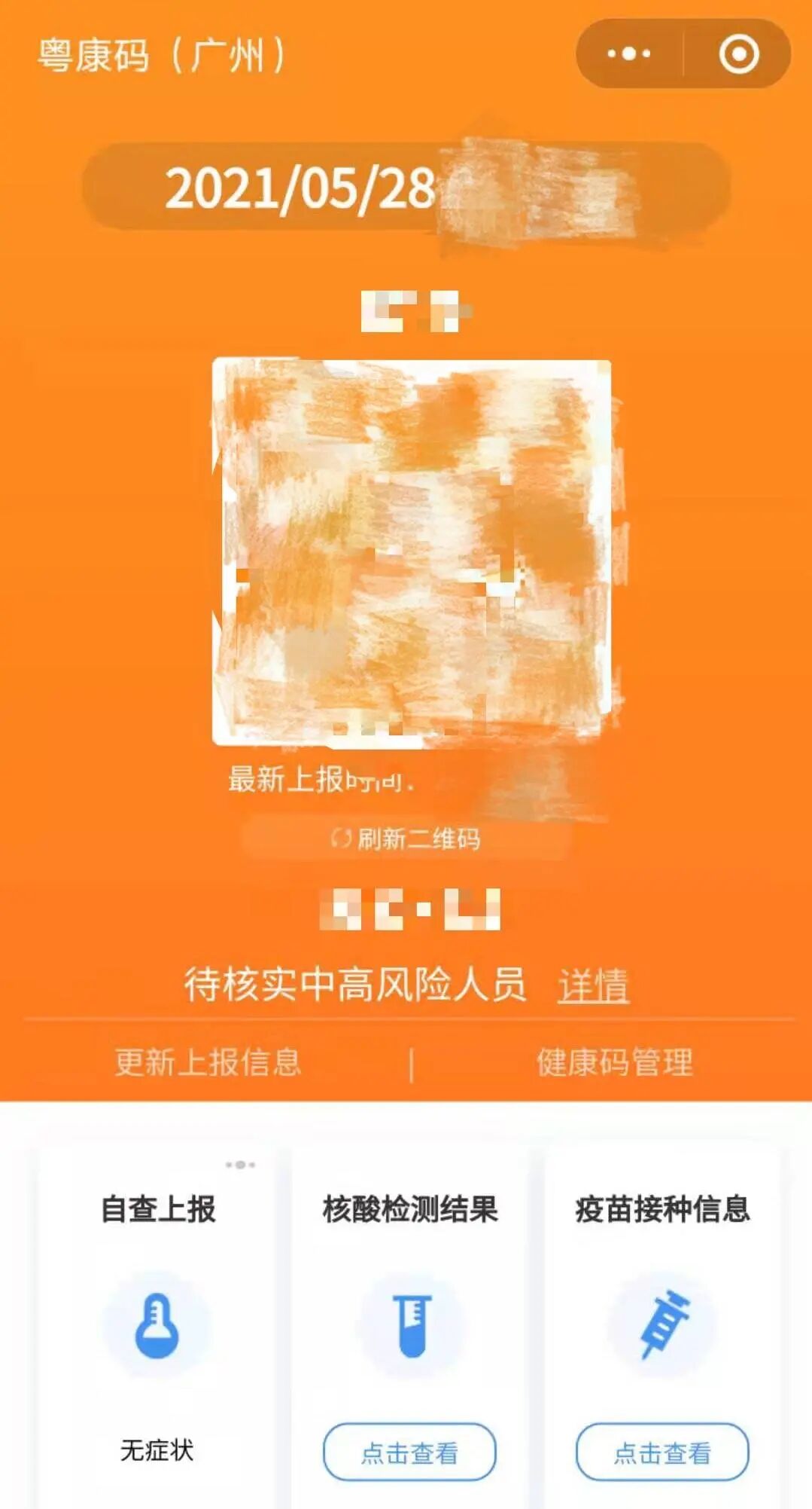 穗康码“黄码”页面。